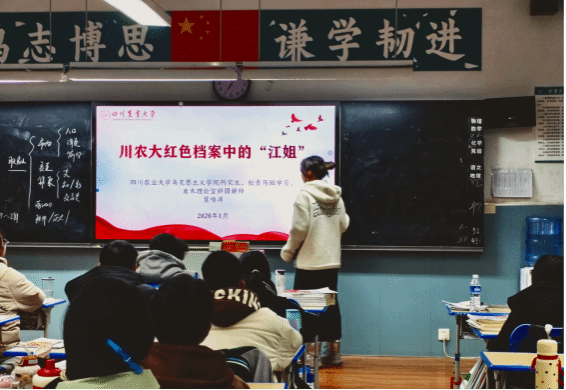 实地缅怀之后,返回家乡的成员分赴四川、重庆15个地区的初高中,开展“传承红色基因·争做时代新人”主题宣讲。团队成员结合校史馆与十二桥烈士墓的实践感悟,精心筹备PPT与互动环节,用青少年易懂的语言讲述江竹筠“寒门学霸亦为革命勇士”的事迹,分享川农师生抗战时期徒步办学、新时代赴贫困县帮扶的红色故事。问答互动间,红色种子悄然播撒,不仅让学弟学妹们了解了川农红色历史,更激发了青少年的爱国热情与奋斗意识。