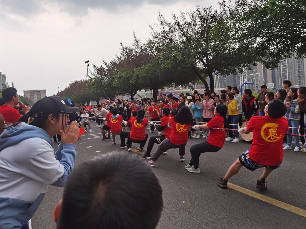 据悉,本次比赛农学院被分到B组,将分别与经济学院、风景园林学院进行对抗,在三者中决出第一名晋级。比赛前,农学院的队友们互相鼓劲,士气高昂。他们身着红色队服,在人群中形成一道靓丽的风景线,而背上印着大大的“農”字,象征着农学院运动员顽强拼搏的精神。在裁判的指令下,参赛队员依次有序上场。随着裁判的一声哨响,绳子两端的力量与加油的呐喊声同一时刻爆发,农学院最终取得比赛胜利。赛后,一位队员表示:“通过刻苦的训练,我们有信心有决心杀入决赛,为学院争光添彩!”