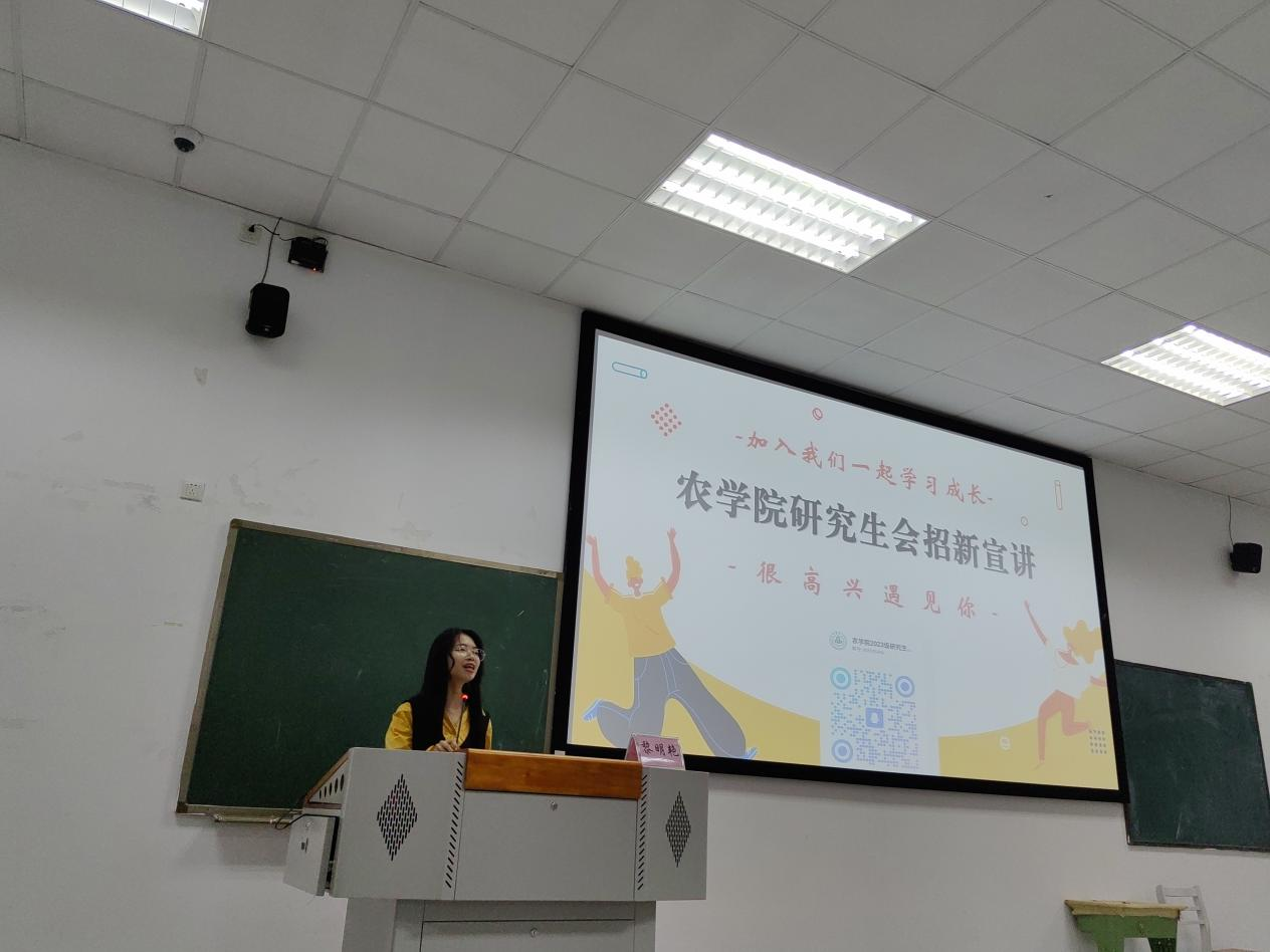 最后,研究生会主席胡权芳在会议上进行了学院研究生会招新宣讲。郑亭对研究生新生的分班以及研究生日常管理注意事项进行了详细介绍,为新生解答了诸多疑惑。