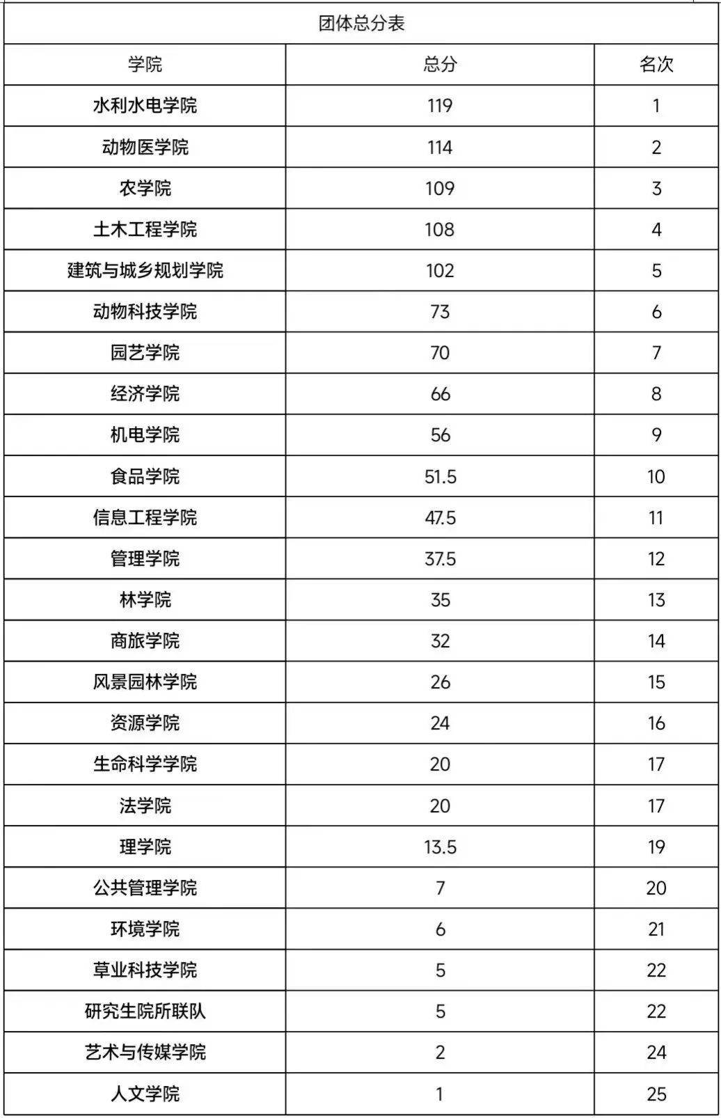 值得一说的是,在男子1500m和女子3000m比赛中,农学院双双拿下第一名,为接下来的比赛开了个好头。在径赛项目中,男女200米比赛也获得了第三名的好成绩。在田赛项目中,男子三级跳远同样表现出色,拿下第三名。在团体项目中,男女4x400米接力分别获得第五名和第三名,最后在抱球迎面接力赛中,农学院队伍也取得了第七名的佳绩。