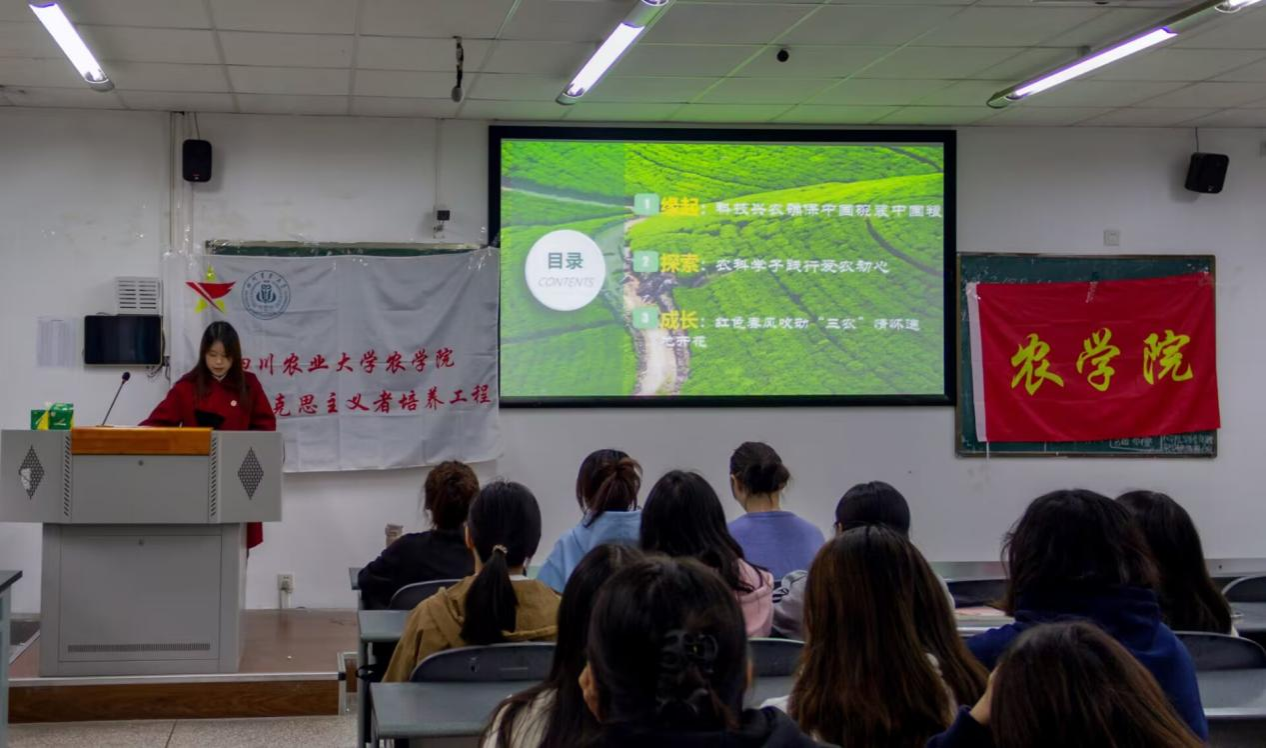 为加强青马班理论知识学习,激励学员在新时代中勇担使命重任,11月1日中午四教B区4208,农学院第三期青马班组织进行理论课程的学习。此次理论课程由农学院党委办公室副主任、团委副书记沈丽淘进行授课。