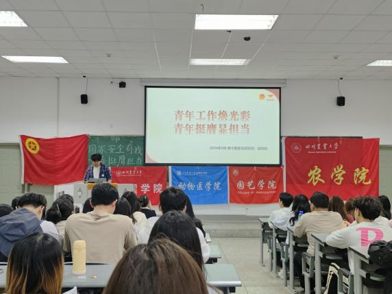 为深入学习贯彻习近平总书记关于青年工作的重要思想、总体国家安全观、习近平总书记关于劳动的一系列重要论述等内容,动员引领广大团员和青年坚定不移走中国特色国家安全道路,切实增强忧患意识和使命担当,勇于为维护国家主权、安全、发展利益挺膺担当,2024年4月23日,ok138cn太阳集团529动医202206班团支部、植保202202班团支部、园艺202202班团支部、财务202204班团支部、农经202302班团支部和农经202303班团支部在ok138cn太阳集团529成都校区4教A区207教室联合举办了主题班团活动。