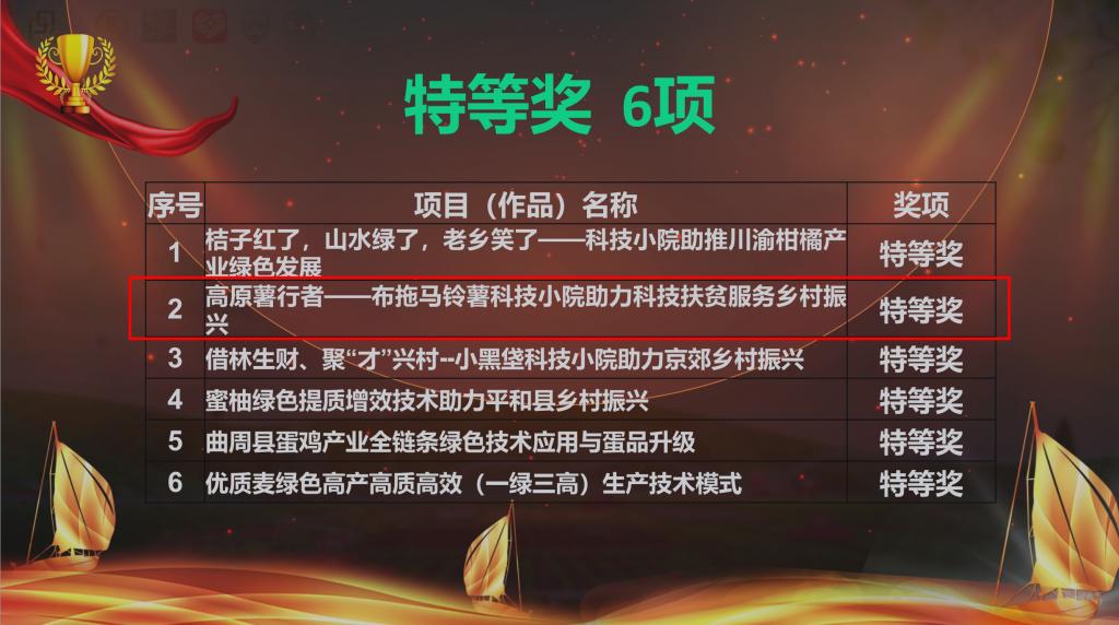 我院布拖马铃薯科技小院项目——《高原薯行者—布拖马铃薯科技小院助力科技扶贫服务乡村振兴》斩获特等奖。校内导师王西瑶、严奉君获“优秀指导教师奖”。该项目针对布拖县马铃薯产业面临的新品种缺乏、种薯退化严重、栽培与贮藏技术粗放、加工与产品缺乏和技术推广艰难五大问题,经过3年多时间的不懈努力,集成创新“良种、良繁、良法、良品、良模”五良技术与示范推广模式,建全了布拖县马铃薯产业体系并取得显著效益。