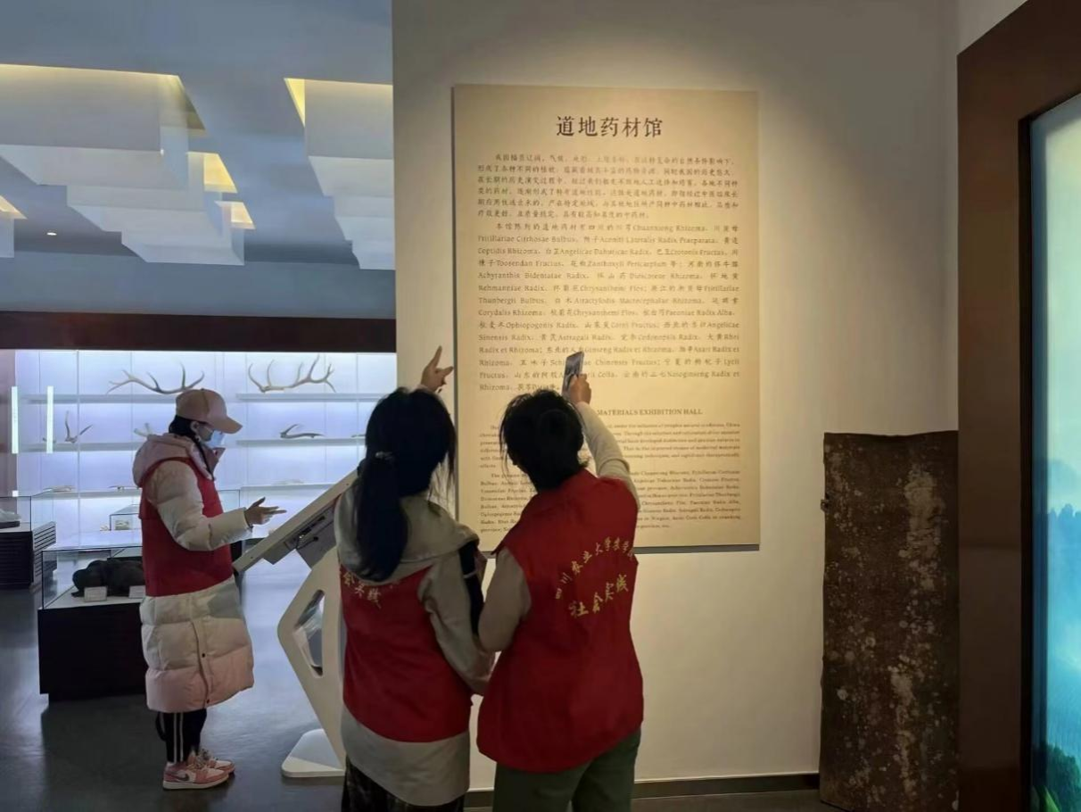 细究紫苏产业,助力乡村振兴,要从“紫苏”这味中药材药用价值、药理作用等方面入手。1月12日,舒达紫苏探访分队在队长任星宇的带领下驱车前往成都中医药大学的中药博物馆进行参观学习,了解和感受中药文化的魅力。通过场景还原和多种先进演示手段的展示,以及在专业人士的讲解下,该分队不仅知晓紫苏药名起源、性味以及有止血、提高免疫、降低血脂、润肠通便、驱寒等功效,还深入了解中药历史、中药工艺、中药制作。中药紫苏知识的学习作为本次实践活动的重要一环,为后续紫苏饮品制作、紫苏走进民众等活动奠定了坚实的理论基础。