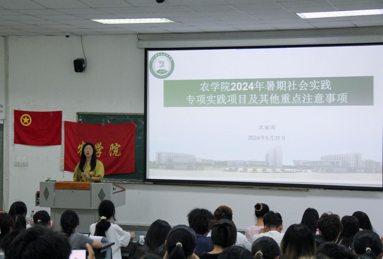 为响应党中央号召大学生暑期“三下乡”社会实践,切实做好农学院学生暑期社会实践工作,农学院团委大学生社会实践工作部于2024年5月31日中午12:30-14:00在4-A103召开了2024年暑期社会实践动员大会。农学院党委副书记闫宇薇,农学院党委办副主任、团委副书记沈丽淘,农学院研究生社会实践负责人吴笑语出席本次大会,研究生团支部书记、院团校学员、青马班学员、院学生主干以及有意愿了解社会实践的同学参加此次动员大会。会议由农学院主持队成员夏莎莎主持。