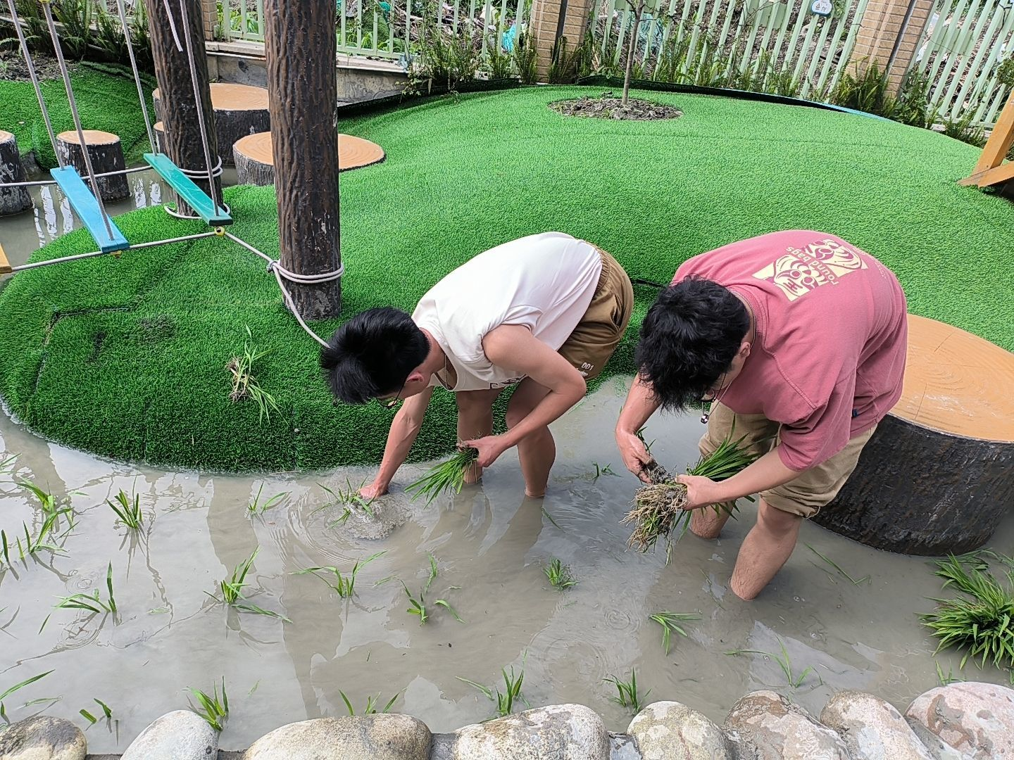 “姐姐我们种了自己的水稻,是不是稻子熟了就可以吃上用它们做的米饭了呀。”“是呀,这都是你们的劳动成果,要好好珍惜,当然以后也一定不要浪费粮食珍惜别人的劳动成果哦!”志愿者们通过与小朋友的交谈对他们循循善诱,为他们树立“节约粮食、珍惜粮食”的观念。张紫柔表示,对于低龄阶段的小孩子,有教育意义的交谈往往比肃静的课堂更能让他们体会深刻。在小朋友们与志愿者的有趣交谈中,插秧工作伴随着渐渐停下的欢笑声结束了。