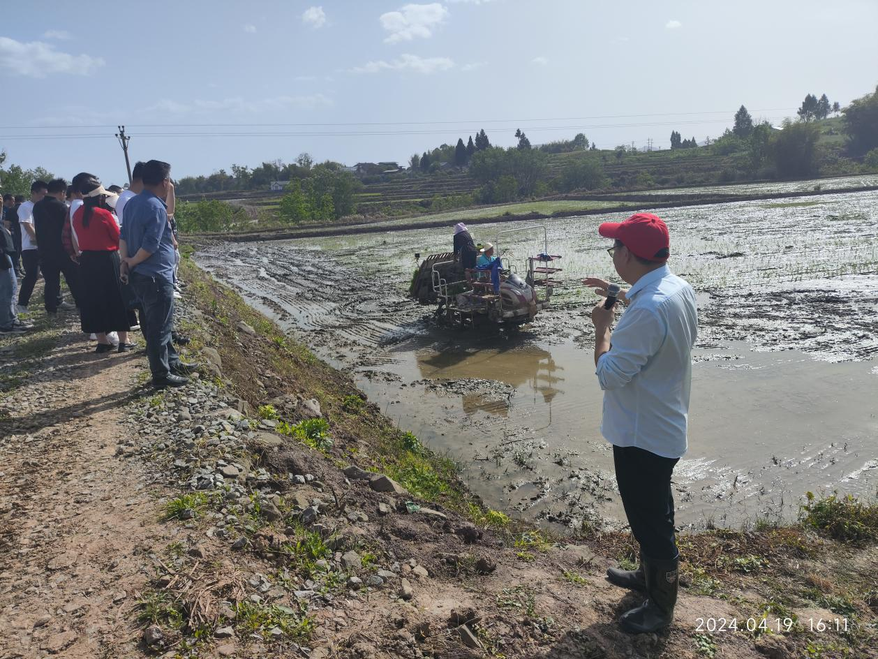 4月19-21日,科技下乡万里行(22团)水稻产业专家服务团成员、我校农学院陈勇副教授、王淘博士后和机电学院雷小龙副教授深入广安市广安区、岳池县、邻水县和南充市营山县等川东水稻主产县的20余个种粮大户,开展水稻齐苗壮根绿色低碳育秧、减穴稳苗机插秧等关键技术落实的巡回指导,并在广安区花桥镇召开了2024年广安市机插秧育插技术现场培训会。广安市农业农村局种植业科科长李世林、农技站站长秦玉霞、农机站站长罗铁和各县(市、区)农业农村局分管领导、农技人员及种粮大户70余人参加培训。