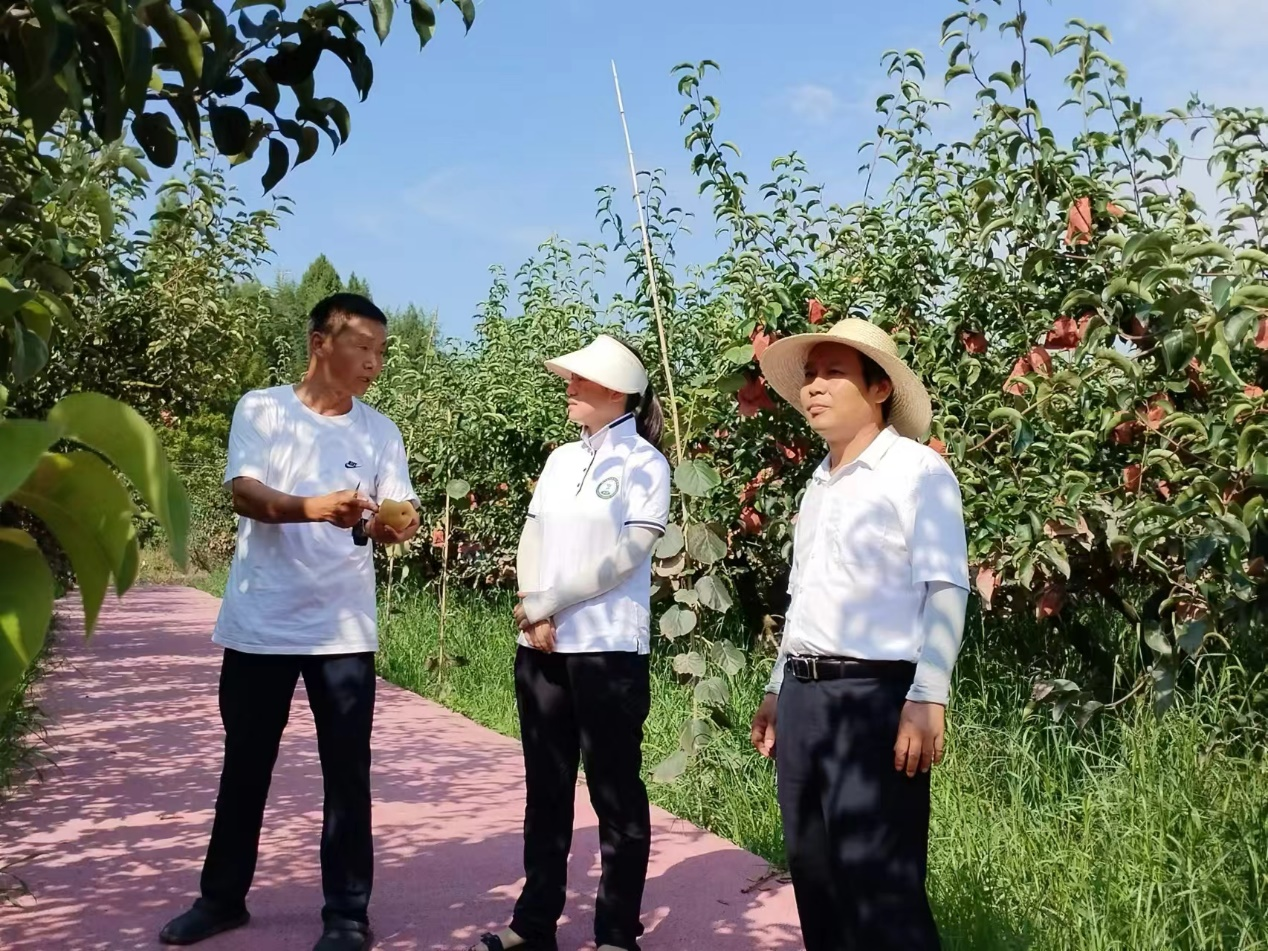 6日,蒋春先一行在麻柳镇千亩水稻高质量示范基地调查了水稻白背飞虱和稻纵卷叶螟等害虫发生危害和防控情况,跟踪了水稻抗虫性鉴定和色板诱控试验效果,并对近期水稻病虫害防控提供了建议。7日,团队一行前往万家镇五洞村月亮湾水果种植专业合作社。该合作社种植李、桃等水果。五洞村党支部书记、专合社负责人梁远芳详细介绍了专合社情况及果树病虫害发生及防治情况。团队一行调查了果园病虫害发生情况,发现由于多种果树混栽,梨小食心虫、害螨、穿孔病等问题较为突出。了解到目前该专合社病虫害防控主要以化学防治为主,存在防控技术单一,防效不佳的问题,团队详细介绍了病虫害绿色防控理念,针对生草栽培、性诱剂诱杀、释放捕食螨等技术进行了推荐和指导。