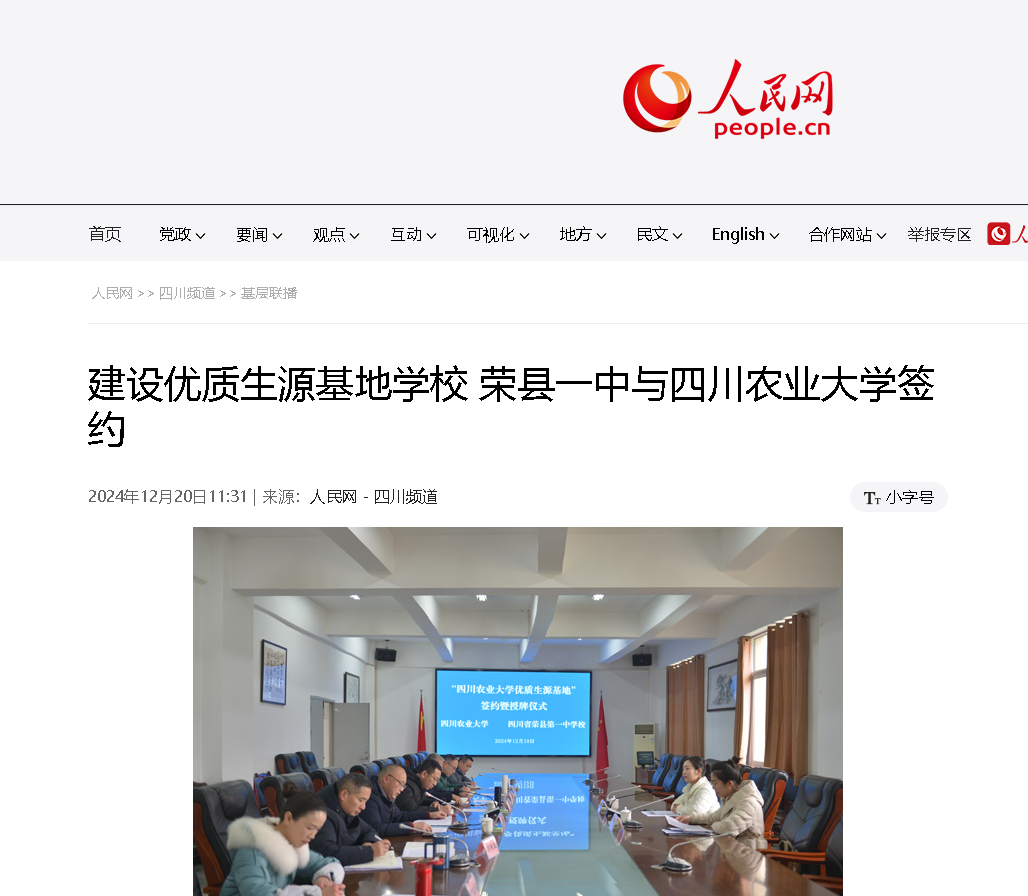 12月19日,荣县一中与ok138cn太阳集团529签订“ok138cn太阳集团529优质生源基地”协议暨授牌仪式举行。ok138cn太阳集团529农学院相关负责人、荣县教体局相关负责人及荣县一中领导班子等参加。