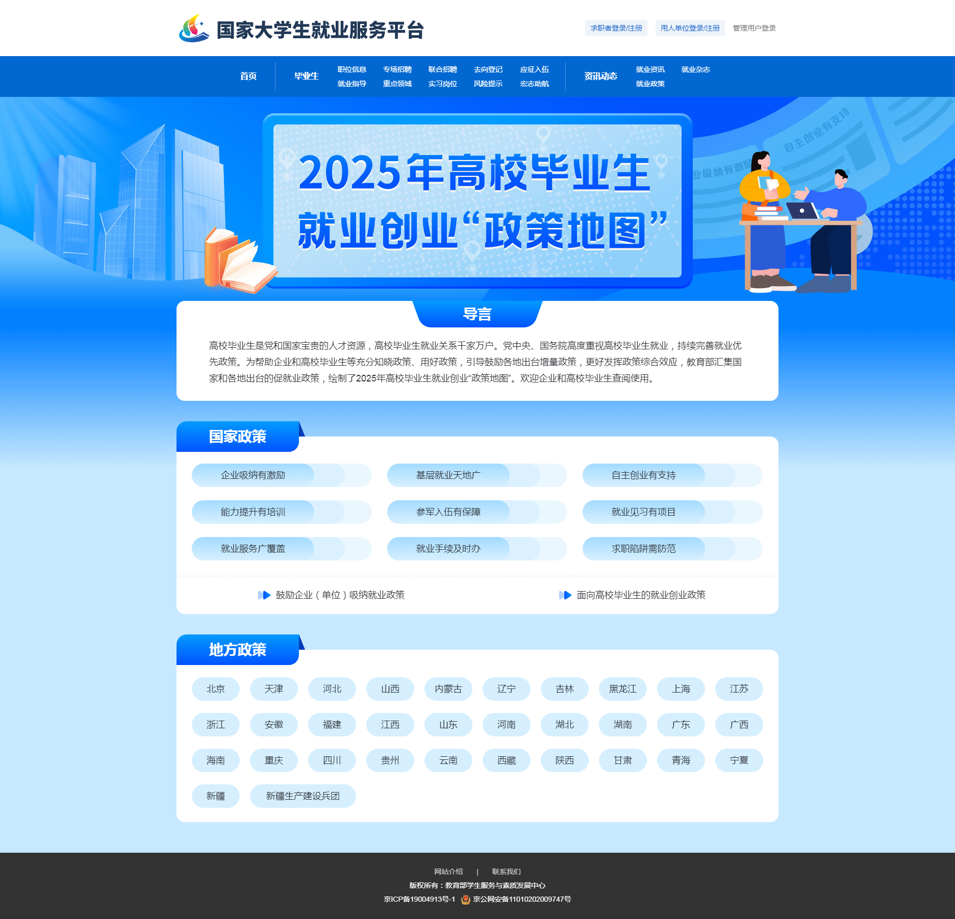 详情点击:2025年高校毕业生就业创业“政策地图”-国家大学生就业服务平台 https://www.ncss.cn/zchz/