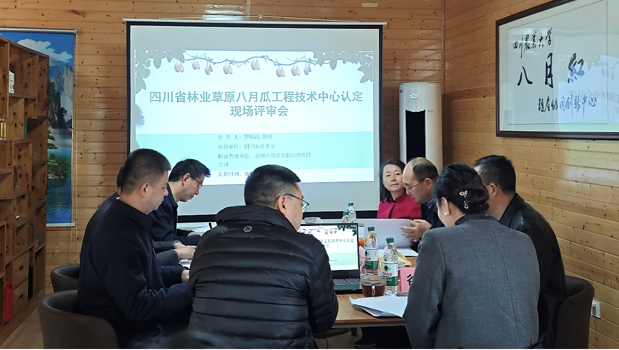 11月18日,由四川省林草局组织专家对我校罗培高教授团队申报的“四川省林业草原八月瓜工程技术中心”进行了现场审查认定。省林草局数字林草与科技处谷艳平副处长,省林草局科学技术推广总站站长韩华柏研究员,省农科院经济作物研究所党委书记张小军研究员,成都中医药大学刘友平研究员,省林科院罗成荣研究员,中科院成都生物所吴瑜研究员参加评审会,我校科技管理处副处长杜俊波、农学院罗培高教授及团队成员参会,会议由谷艳平主持。