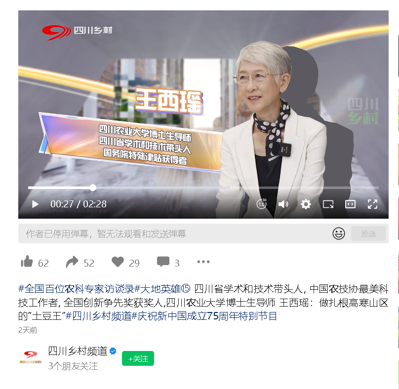 (四川乡村频道)王西瑶:做扎根高寒山区的“土豆王”