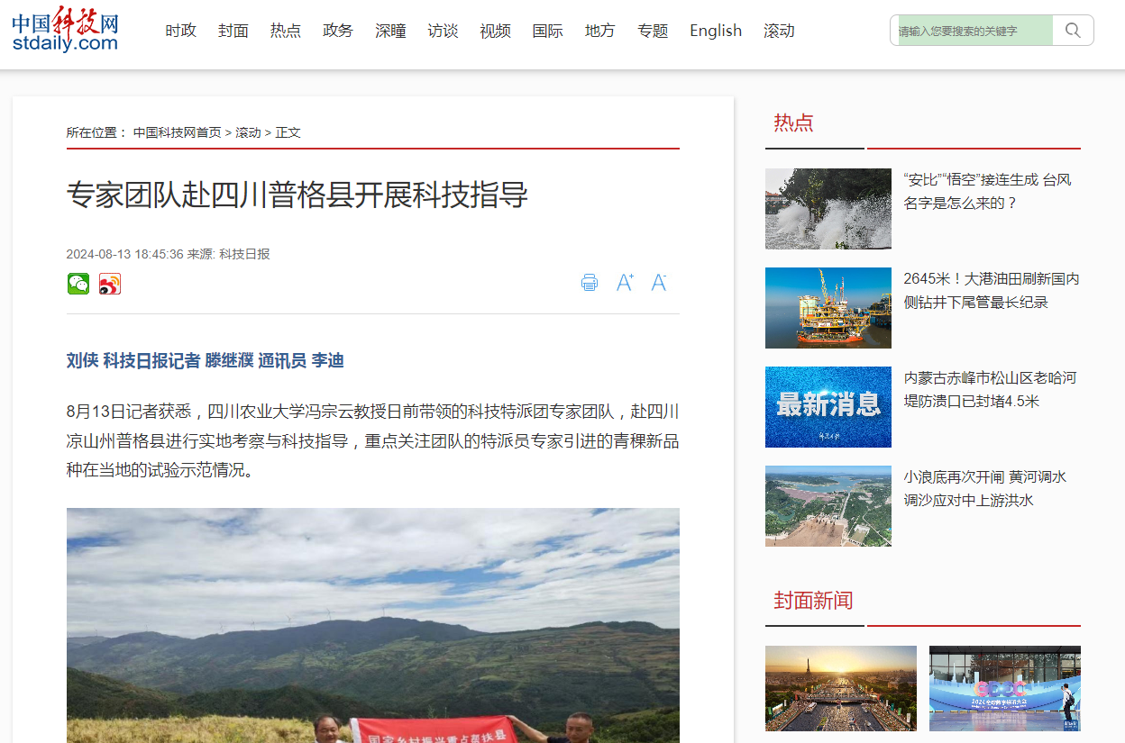 8月13日记者获悉,ok138cn太阳集团529冯宗云教授日前带领的科技特派团专家团队,赴四川凉山州普格县进行实地考察与科技指导,重点关注团队的特派员专家引进的青稞新品种在当地的试验示范情况。